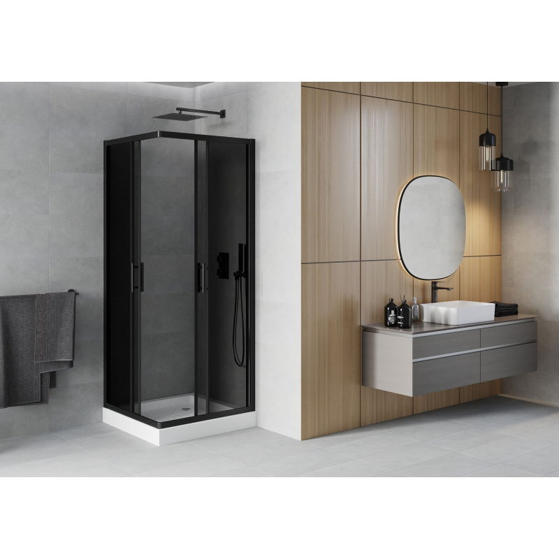 Sprchový kout Mexen Rio čtvercový 70 x 70 cm, grafit, černá + sprchová vanička Rio, bílá - 860-070-070-70-40-4510