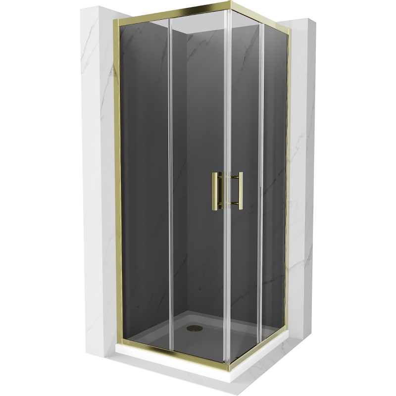 Sprchový kout Mexen Rio čtvercový 80 x 80 cm, grafit, zlatý + plochá sprchová vanička, bílá - 860-080-080-50-40-4010G