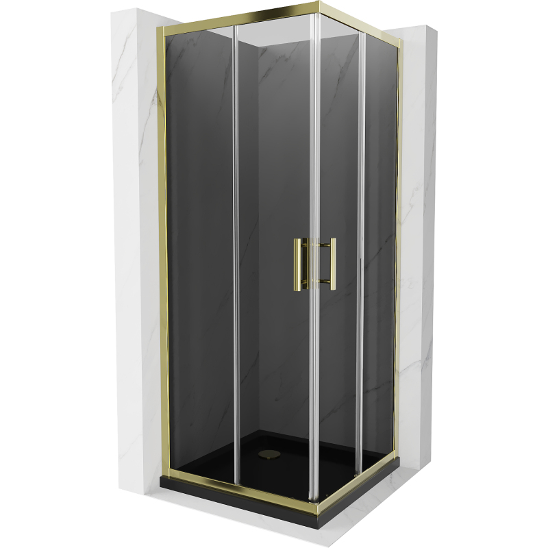 Sprchový kout Mexen Rio čtvercový 80 x 80 cm, grafit, zlatý + plochá sprchová vanička, černá - 860-080-080-50-40-4070G