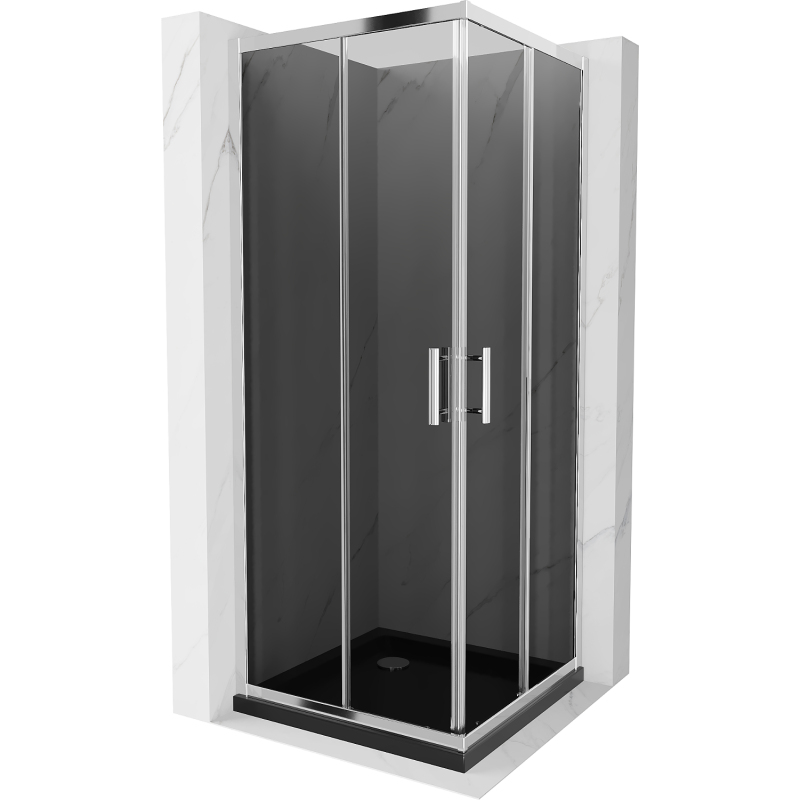 Sprchový kout Mexen Rio čtvercový 90 x 90 cm, grafit, chrom + plochá sprchová vanička, černá - 860-090-090-01-40-4070
