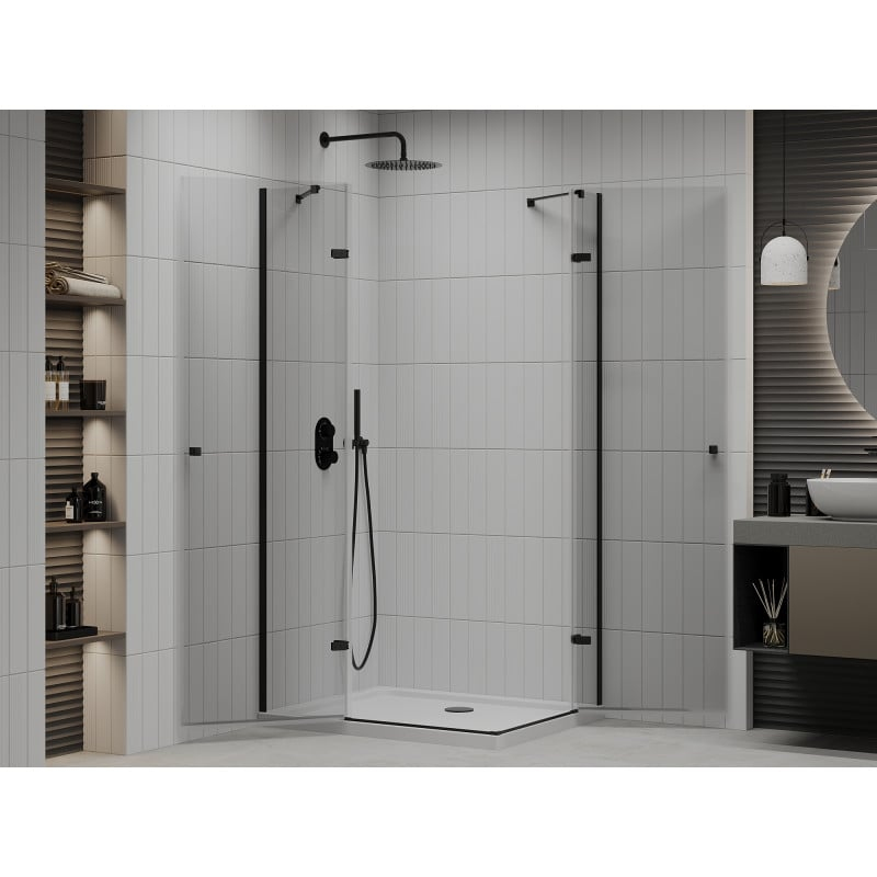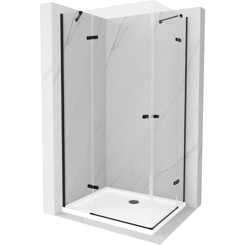 Sprchový kout Mexen Roma Duo s výklopným mechanismem 80 x 70 cm, průhledný, černý + plochá sprchová vanička - 854-080-070-70-02-4010B