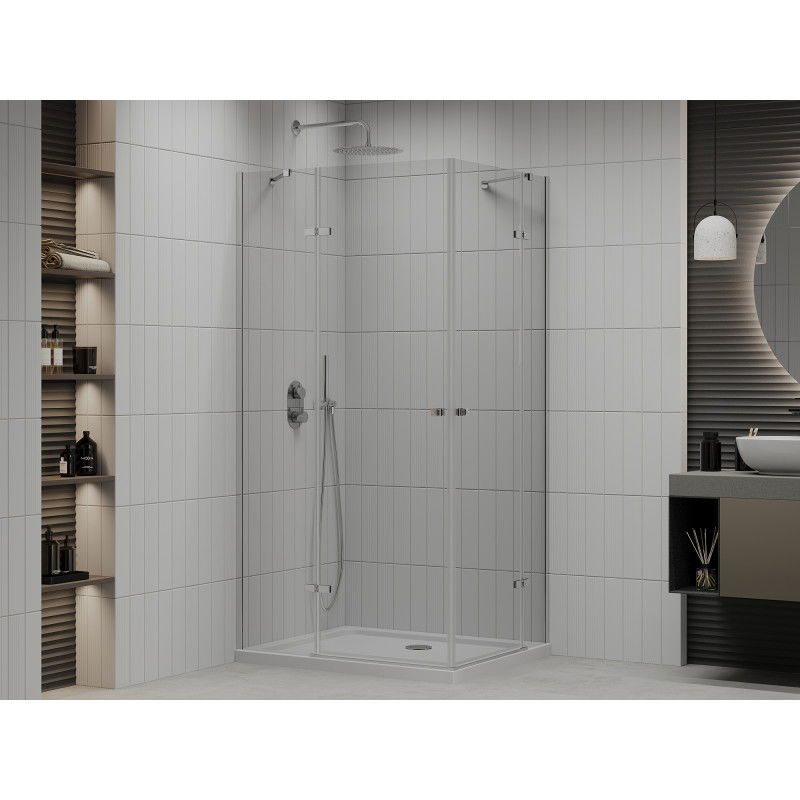 Sprchový kout Mexen Roma Duo s výklopným mechanismem 80 x 70 cm, průhledný, chrom + plochá sprchová vanička - 854-080-070-01-02-4010