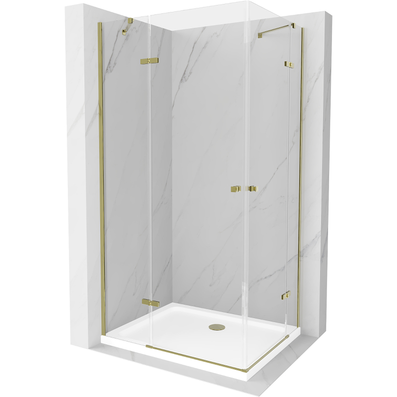 Sprchový kout Mexen Roma Duo s výklopným mechanismem 90 x 80 cm, průhledný, zlatý + plochá sprchová vanička - 854-090-080-50-02-4010G