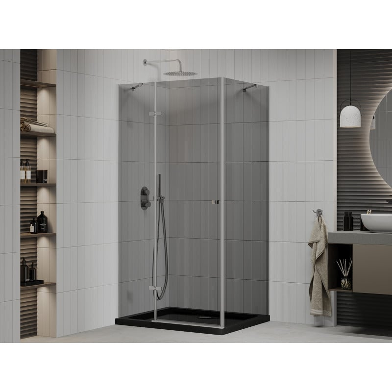 Sprchový kout Mexen Roma s výklopnou hlavou 120 x 90 cm, grafit, chrom + plochá sprchová vanička, černá - 854-120-090-01-40-4070