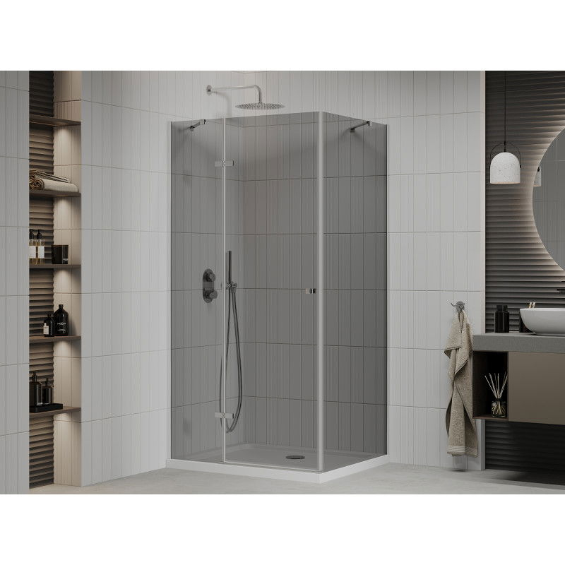 Sprchový kout Mexen Roma s výklopným mechanismem 100 x 70 cm, grafit, chrom + plochá sprchová vanička, bílá - 854-100-070-01-40-4010