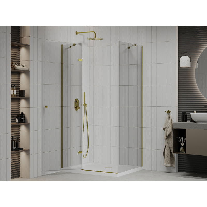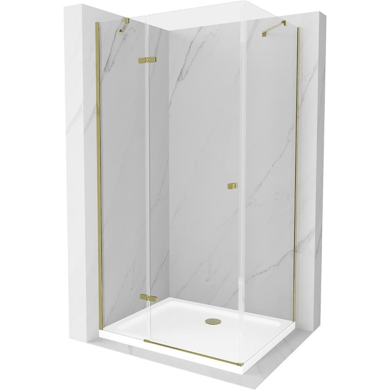 Sprchový kout Mexen Roma s výklopným mechanismem 110 x 100 cm, průhledný, zlatý + Plochá sprchová vanička - 854-110-100-50-00-4010