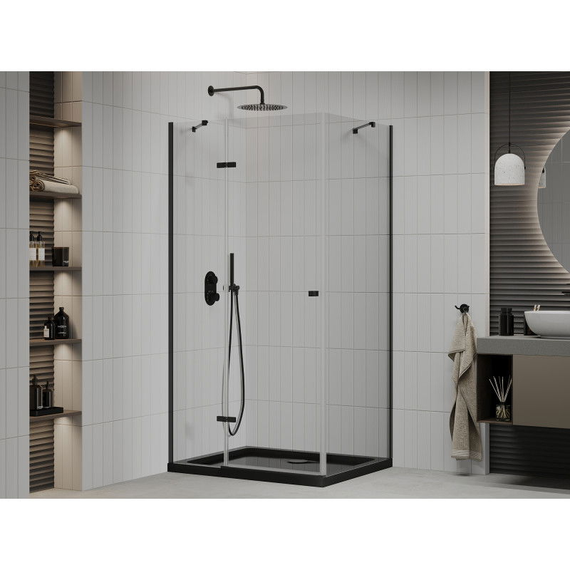 Sprchový kout Mexen Roma s výklopným mechanismem 90 x 120 cm, průhledný, černý + Plochá sprchová vanička, černá - 854-090-120-70-00-4070B