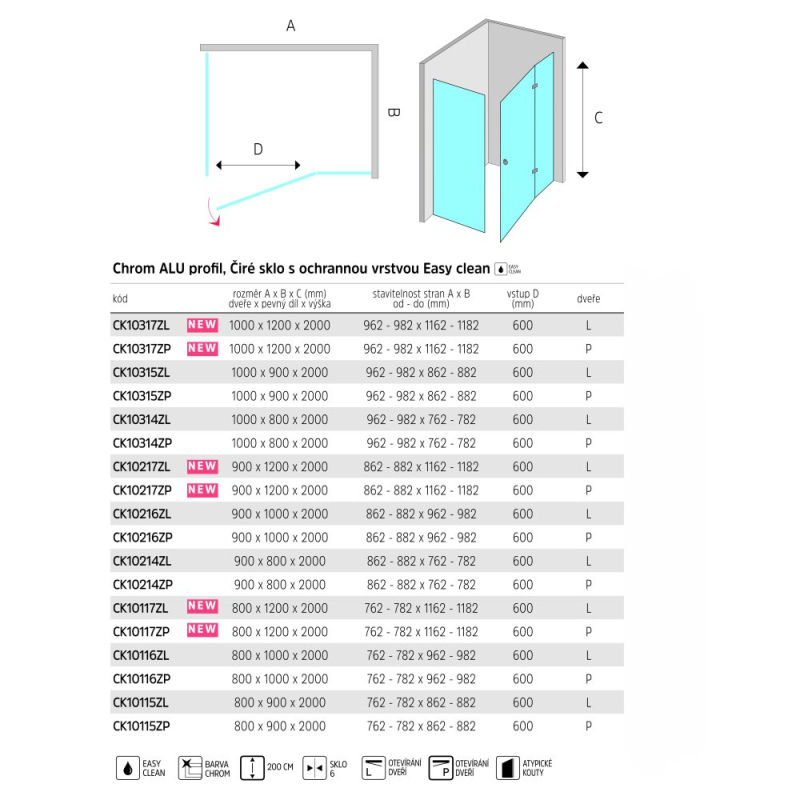 Hliníkové profily v barvě chrom, sklo Čiré, síla skla 6/8 mm, obdélník, 800x1200 mm, výška 2000 mm.. Zobrazit více