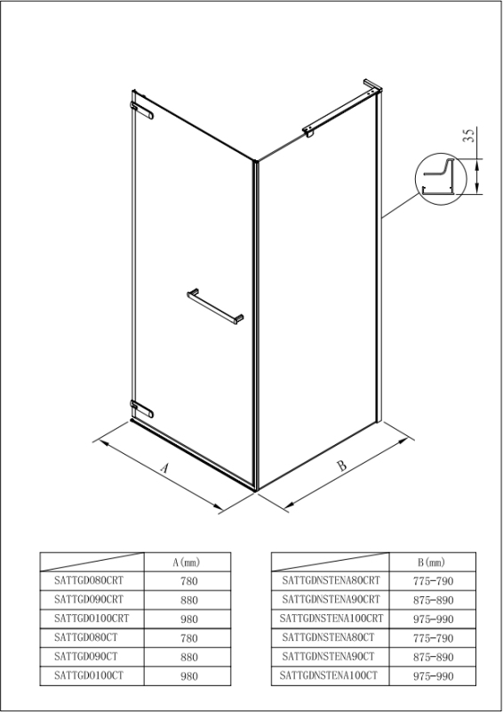 Sprchový kout bez vaničky a barvou profilů v lesklém chromu, výplň je z čirého skla bez dekoru. Produkt je opatřen povrchovou úpravou Easy Clean, která usnadňuje čistění a minimalizuje usazování vodního kamene. Otočný systém otevírání. Určení - levá i pravá orientace.