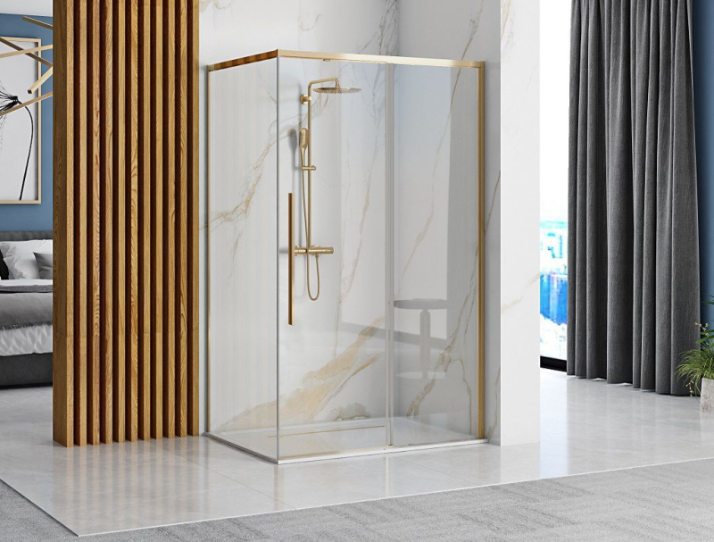 Solar to wyrazista, a zarazem ponadczasowa i nowoczesna kabina prysznicowa, która została wykonana z najwyżej jakości materiałów i wykończona w pięknym złotym kolorze. Piękne, złote pokrycie jest odporne na zabrudzenia i plamy, a dodatkowo jest łatwe w utrzymaniu czystości. Połączenie złotych profili, długiego uchwytu oraz zawiasów wraz z przezroczystą linią szklanych powierzchni, doskonale wkomponuje się w nowoczesną oraz tradycyjną łazienkę. Kolor złoty to zdecydowany lider na rynku wyposażenia wnętrz łazienkowych. CAD