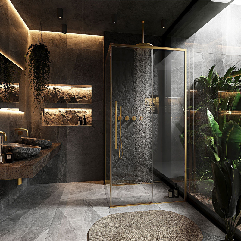 Solar je výrazný a nadčasový moderní sprchový kout, vyrobený z nejkvalitnějších materiálů a povrchově upraveny zlatoskvoucím lakováním. Zlatý lak je odolný vůči nečistotám a skvrnám a také se snadno čistí. Kombinace zlatých profilů, dlouhého madla a pantů s průhlednou linií skleněných ploch skvěle zapadne do moderní i tradiční koupelny. Montážní návod