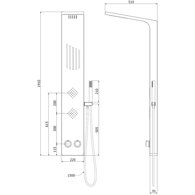 Sprchový panel Mexen Navas, černý - 7627-02-70