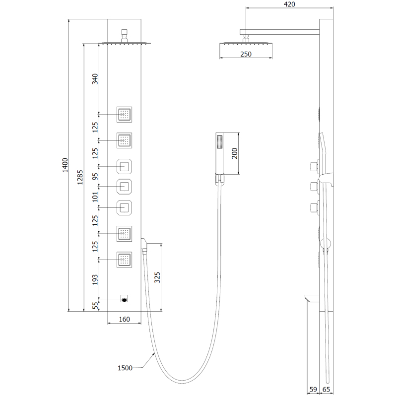 Sprchový panel Mexen Orco, černý - 7607-03-70