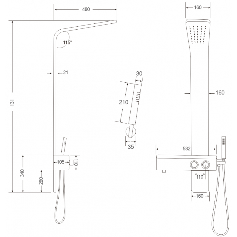 Sprchový panel Mexen Sund, černý - 7620-02-70