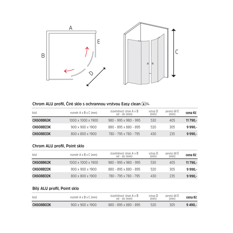 Parametry sprchového koutu: