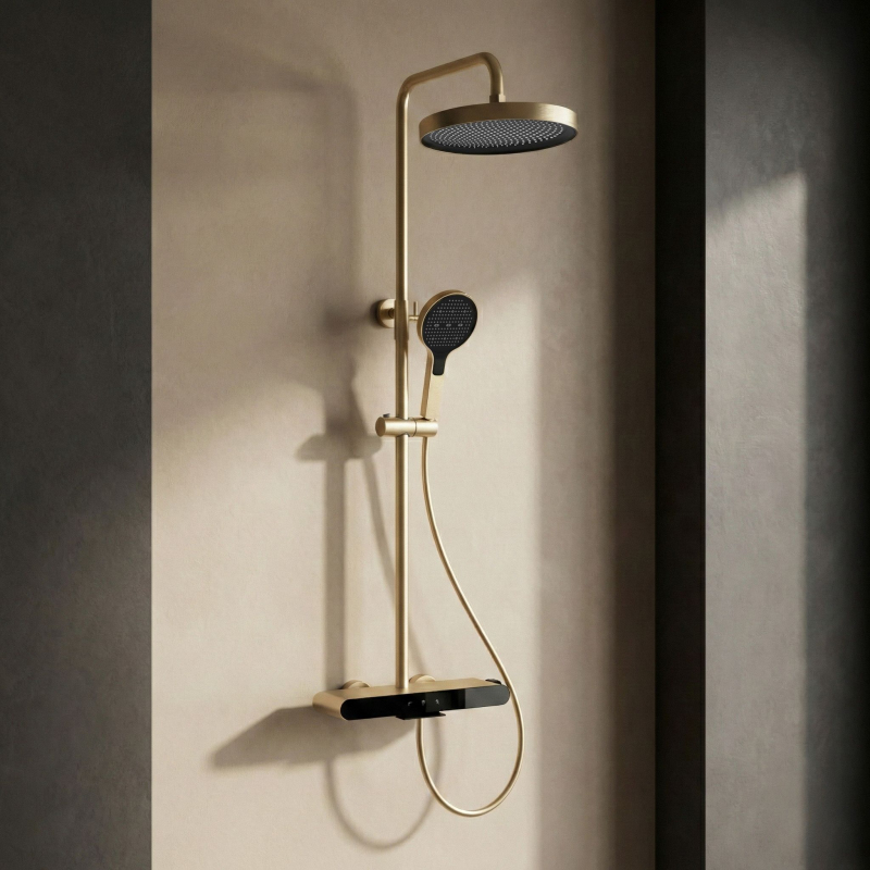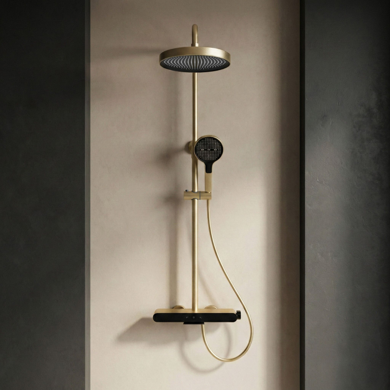 Dodejte své koupelně výjimečný, elegantní charakter díky nástěnnému sprchovému setu Rea Farel Brush Gold. Tento model v provedení kartáčované zlato je určen pro ty, kteří hledají alternativu k černé a chromu. Set kombinuje ušlechtilý kovový design s inovativní funkčností ovládání a udržování čistoty.Barva Brush Gold – ušlechtilý zlatý odstín s jemně kartáčovanou strukturou. Saténová povrchová úprava působí moderně a zároveň je praktická – na kartáčovaném povrchu jsou kapky vody a otisky prstů výrazně méně viditelné.PVD povlak – zlatá barva byla nanesena technologií PVD (Physical Vapor Deposition). Jde o nejodolnější metodu barvení armatury, která zaručuje mimořádnou odolnost vůči poškrábání, zmatnění a korozi.Intuitivní panel Piano – baterie se ovládá pomocí tří mechanických tlačítek (kláves). Toto pohodlné řešení umožňuje bleskově přepínat proud vody mezi hlavovou sprchou, ruční sprchou a výtokem bez nutnosti otáčení ovladačů.Ruční sprcha s funkcí Bidetta – rukojeť sprchy skrývá další funkci. Má tlačítko na zadní straně a trysku na horní části těla. Po aktivaci se změní na bidetovou spršku, což usnadňuje čištění kabiny, mytí vaničky či napouštění vysokých nádob.Diskrétní kaskádový výtok – tělo baterie je vybaveno širokým kaskádovým výtokem. Umožňuje rychlé naplnění kbelíku, misky nebo kontrolu teploty vody přímo u baterie.Materiály a regulace – srdcem setu je pevné tělo z mosazi. Hlavová i ruční sprcha z lehkého ABS mají systém proti usazování vodního kamene. Celek je upevněn na výškově nastavitelné tyči.Set Rea Farel Brush Gold představuje spojení technologické přesnosti a jedinečného designu. Kartáčovaný zlatý PVD povrch je výrazným akcentem interiéru a funkce sprchy i výtoku z něj dělají jeden z nejfunkčnějších setů na trhu.