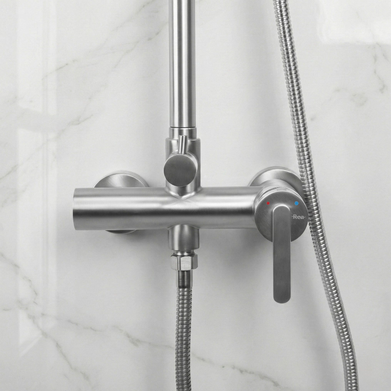 Objevte luxusní rozměr každodenní sprchy se sprchovou soupravou na omítku Rea Ontario, která zaujme svou kartáčovanou povrchovou úpravou. Tento elegantní prvek vybavení byl navržen pro nejnáročnější uživatele a spojuje vytříbenou estetiku s nejmodernější technologií povrchové úpravy. Použitý PVD povlak zaručuje nejen bezchybný vzhled, ale i mimořádnou odolnost proti poškrábání a vnějším vlivům, takže si výrobek zachová svůj lesk po dlouhá léta.Kartáčovaná struktura povrchu – dodává interiéru moderní matný charakter, na kterém jsou méně vidět stékance a otisky prstů.Technologie PVD povlaku – zajišťuje maximální stálost barvy a odolnost proti mechanickému poškození a korozi.Velká hlavová sprcha – nabízí široký a uklidňující proud vody pro plnohodnotný relax jako v profesionálním SPA.Pohodlná ruční sprcha – umožňuje přesné oplachování a usnadňuje každodenní údržbu čistoty ve sprchové zóně.Montáž na omítku – umožňuje rychlou instalaci a dodává koupelně industriální, stylový vzhled. Sprchová souprava na omítku Rea Ontario je ideální volbou pro ty, kteří hledají odolná řešení v nejvyšším standardu zpracování. Díky kombinaci hlavové sprchy a funkční ruční sprchy se každé sprchování stává komfortním zážitkem přizpůsobeným vašim potřebám. Volbou produktu značky REA s PVD povlakem investujete do nadčasového designu a spolehlivosti, která promění vaši koupelnu na dlouhá léta.