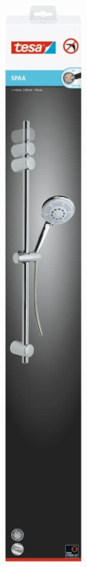 Sprchový set Tesa Spaa, posuvná tyč s hlavicí, pochromované kovové a plastové díly, samolepicí, 905 mm