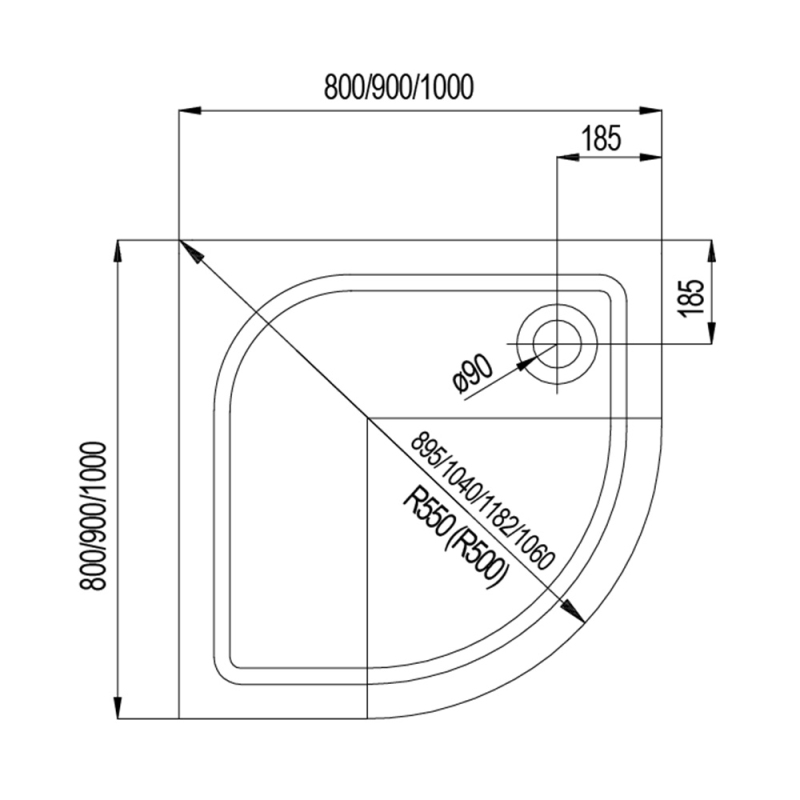- otvor pro sifon ø 90 mm