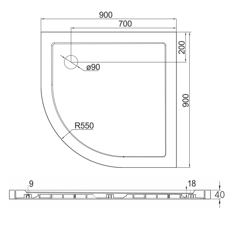 Set čtvrtkruhového sprchového koutu, síla skla 4 mm, sprchová vanička R550, 90x90x4 cm, SMC, bílá, včetně sifonu, bez nožiček.. Zobrazit více