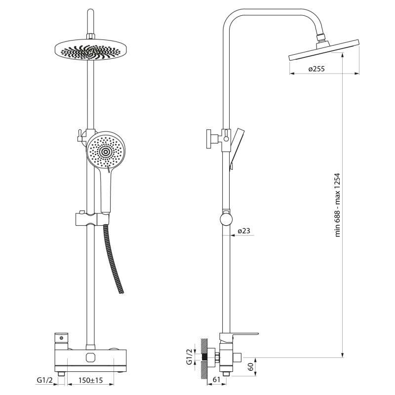 Sprchový sloup s pákovou baterií, otočné ramínko, chrom