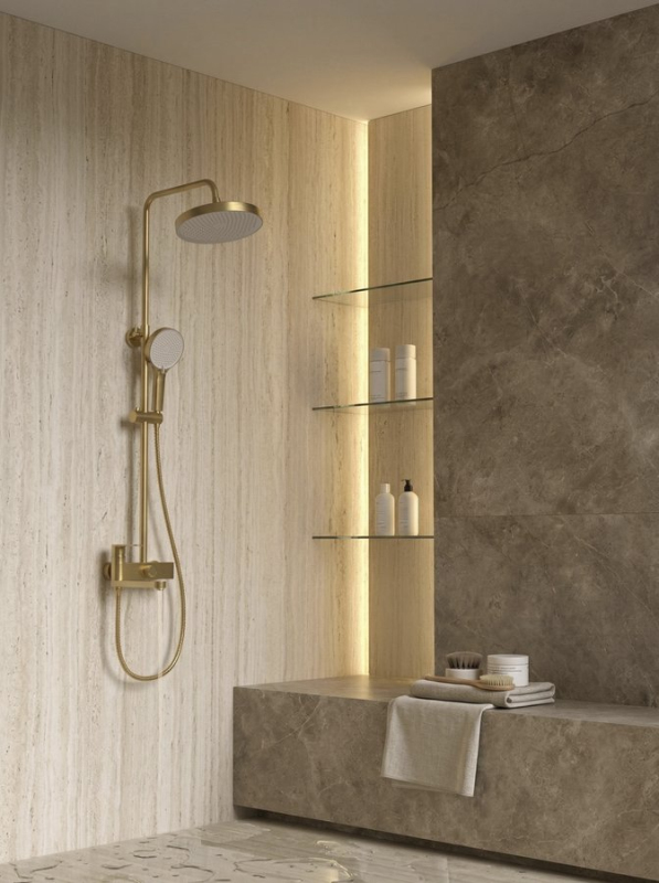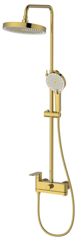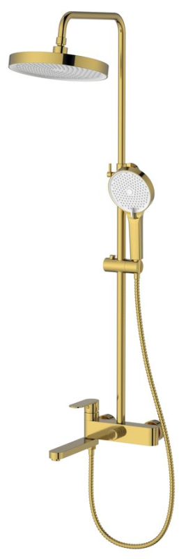 Sprchový sloup s pákovou baterií, otočné ramínko, zlato mat