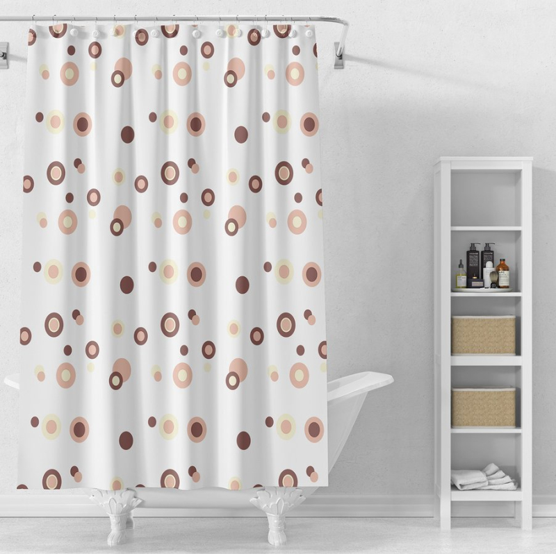 Sprchový závěs 180x180cm, vinyl, bílá, hnědé kruhy ZV034