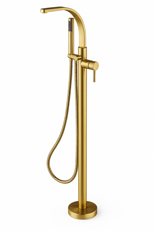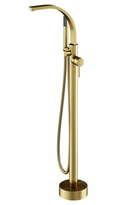Stojánková baterie do podlahy vypadá skvěle v kombinaci s volně stojící vanou.