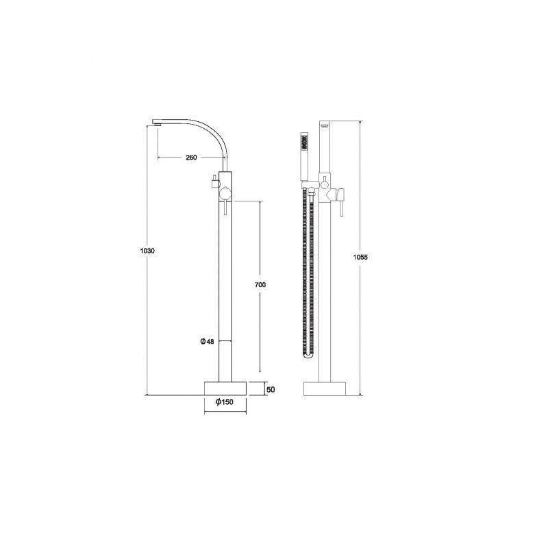 Vanová stojánková baterie je dodávána včetně příslušenství (sprchová růžice a hadice).