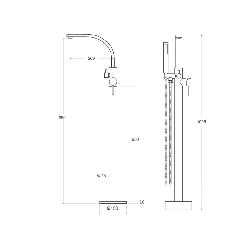 Vanová stojánková baterie je dodávána včetně příslušenství (sprchová růžice a hadice).