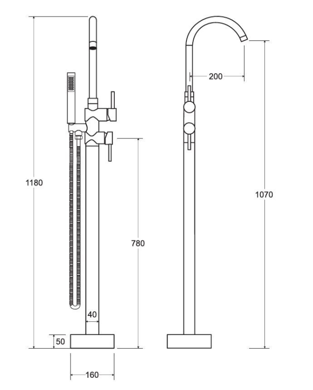 Stojánková vanová baterie ILLUSION I, černá barva (výška 1180 mm) BABWIICZ