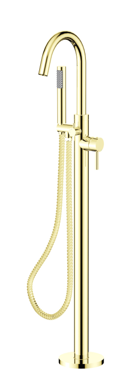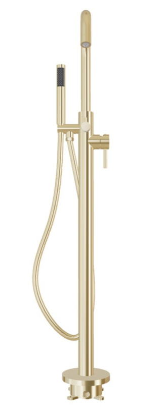 Stojánková baterie do podlahy vypadá skvěle v kombinaci s volně stojící vanou.