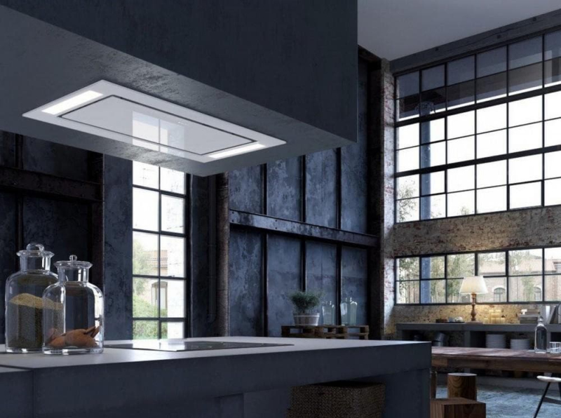 Stropní digestoř Faber HEAVEN GLASS 2.0 WH A90 RB z bílého skla se kompletně zapustí do podhledu (stačí 133 mm) a ponechá maximum prostoru nad varnou zónou. Verze bez motoru pro externí jednotky EVJ M8K/MISTRAL/VILPE. Štěrbinové sání, intenzivní režim, doběh 30 min, 2× LED 4000 K.