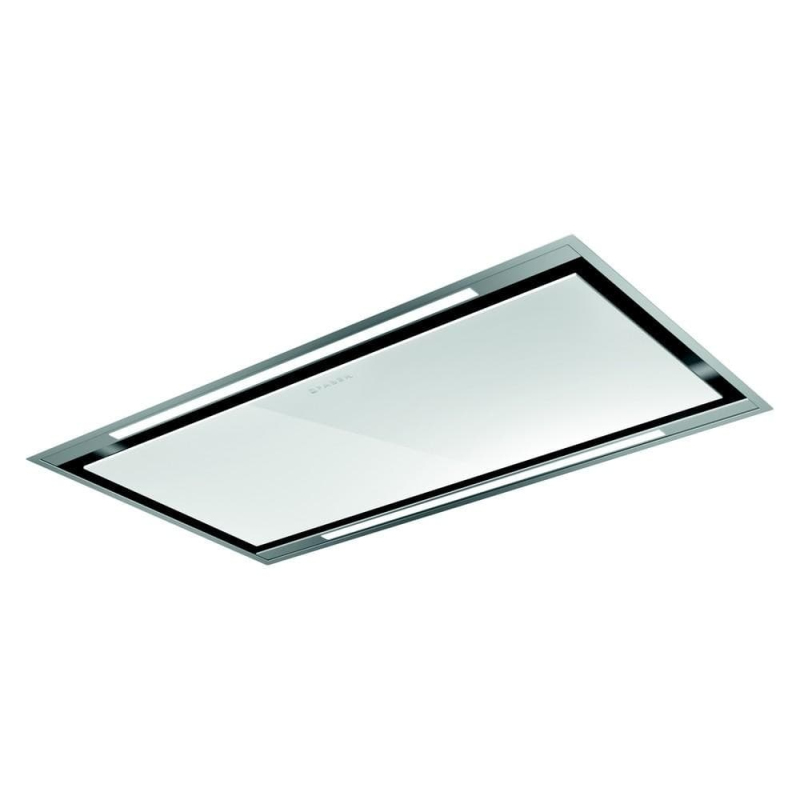 Stropní digestoř Faber HEAVEN LIGHT PRO G/WH FLAT KL A90 (90 cm) v nerezu a bílém skle je určena k plnému zapuštění do podhledu (stačí 210 mm). Úsporný brushless motor A+ nabízí až 700 m³/h, 3+INT+BOOST, LED pásky 3000 K, K‑Link a možnost úpravy pro rekuperaci. Záruka 5 let.