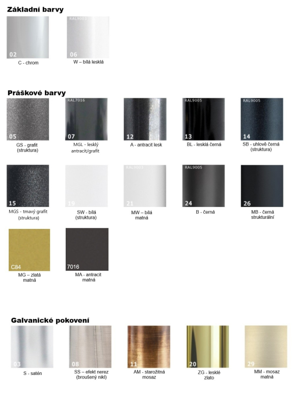 Při objednání ostatní barvy** prosím do poznámky uveďte číslo a název barvy.