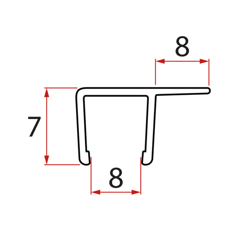 Svislé těsnění pro sklo 8mm, 2000mm