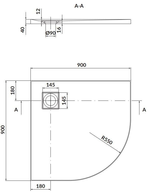 Cersanit Tako Slim set B457 vanička čtvrtkruh černá M 90x4 S932-164