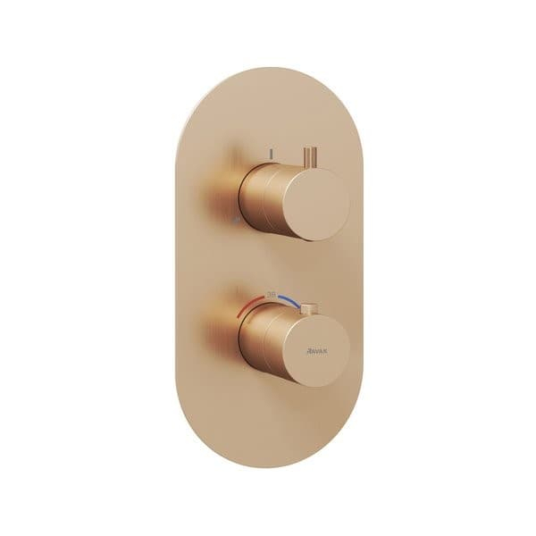 Termostatická podomítková 3cestná baterie Espirit, určená pro R-box. V provedení růžové zlato kartáčované.