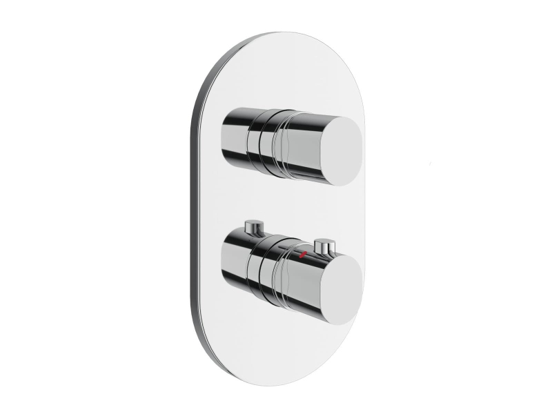 Termostatická podomítková 2cestná baterie Chrome II, určená pro R-box. V chromovém provedení. Nastavení stálé teploty vody.