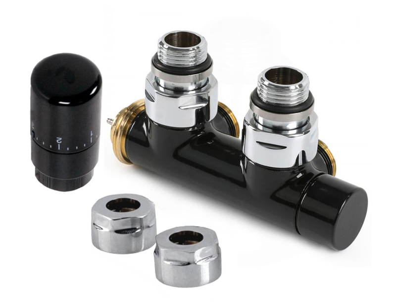Termostatický set rohový – středový, černý, levý pro připojení na Al/PE-X a Al/PERT trubky