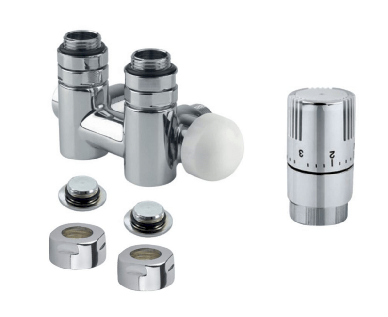 Termostatický set rohový středový pro kombinované zapojení, chrom, pravý pro připojení na plastové trubky Al/PE-X a Al/PERT trubky