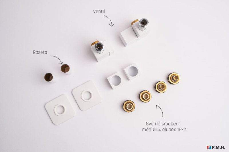 Sada pro připojení radiátoru k ústřednímu (teplovodnímu) vytápění v bílé lesklé barvě. Sada je pro připojení tzv. na rozteč tzn. po stranách radiátoru. Sada je vč. ovládací hlavice a krytek na trubky a otvoru ve zdi. Připojení je možné na měděné i plastové trubky.