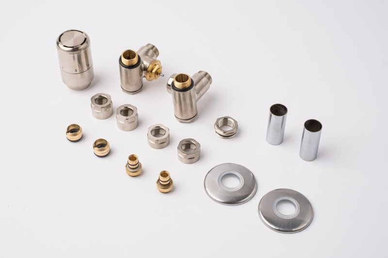 Sada z nerezu pro kombinované vytápění. Sada je pro připojení tzv. na rozteč tzn. po stranách radiátoru. Sada je vč. ovládací hlavice a krytek na trubky a otvoru ve zdi. Připojení je možné na měděné i plastové trubky.