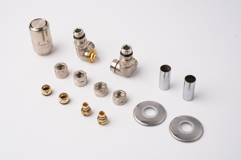 Sada z nerezu pro připojení radiátoru k ústřednímu (teplovodnímu) vytápění. Sada je pro připojení tzv. na rozteč tzn. po stranách radiátoru. Sada je vč. ovládací hlavice a krytek na trubky a otvoru ve zdi. Připojení je možné na měděné i plastové trubky.