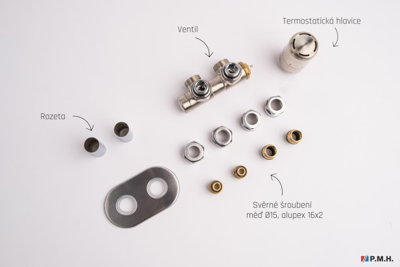 Termostatický ventil pro ústřední vytápění P.M.H. Terra 6x7 cm nerez TER-R-SS