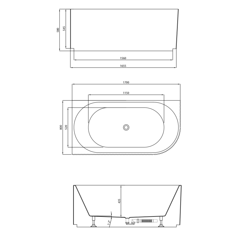 TIBERA STRIP L rohová stojící vana, 170x81cm, bílá