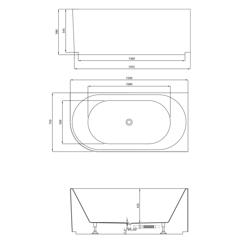 TIBERA STRIP R rohová stojící vana, 150x75cm, bílá