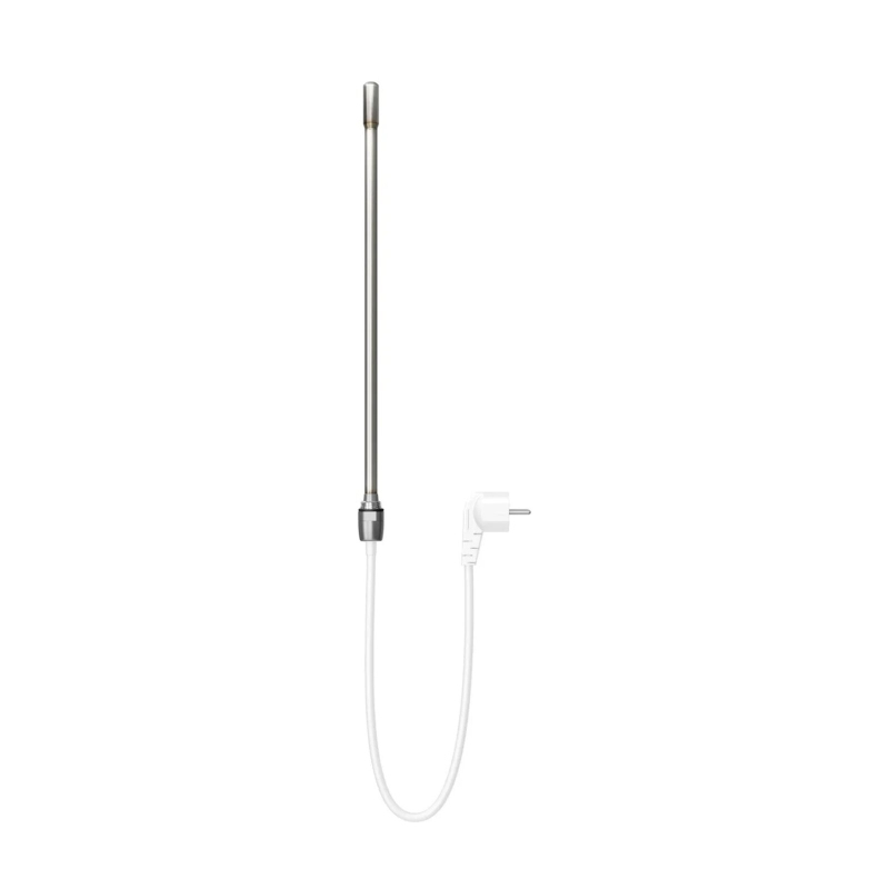 Topná tyč bez regulátoru. Standardní instalace do spodní sběrnice. Napětí: 230 V / 50 Hz. Připojovací závit: G 1/2" vnější (chrom). Délka topné tyče: 72 cm. Rovná šňůra: 120 cm ukončená vidlicí. Příkon: 800 W