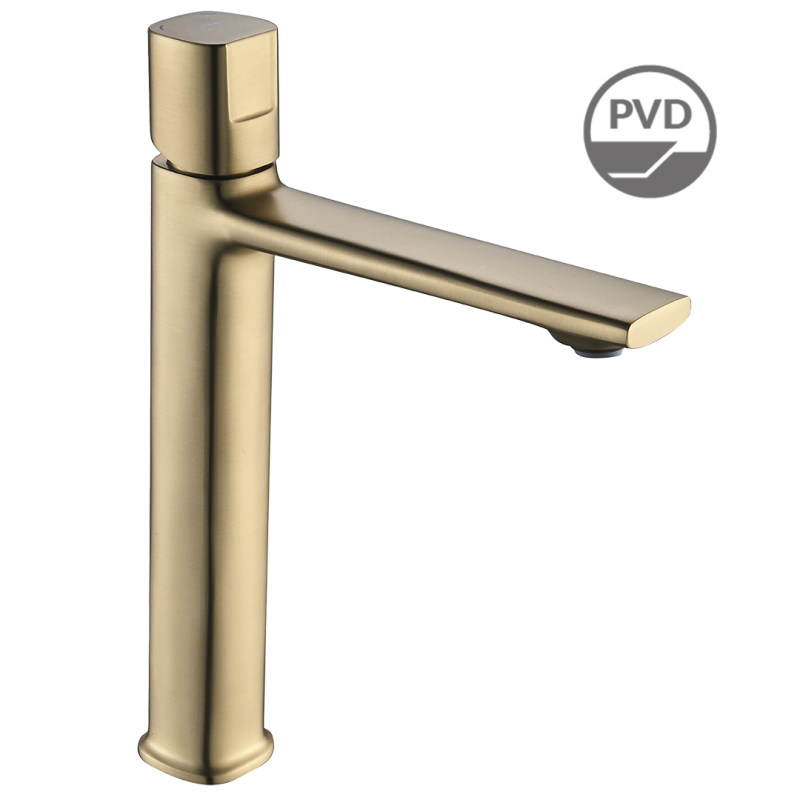 Model BVT_G2ND je stojánková umyvadlová baterie určená na montáž na desku a je dodávána spolu s výpustí. Její provedení v povrchové úpravě šampaňské zlato dodává koupelně luxusní nádech a originální charakter.
