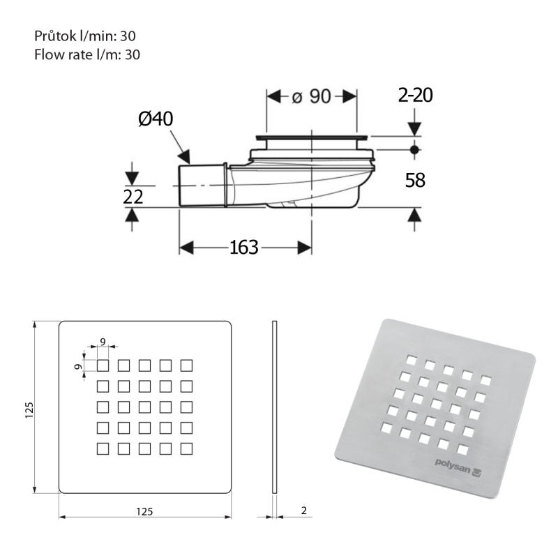 TRENECA vaničkový sifon, průměr otvoru 90mm, DN40, krytka zlato mat